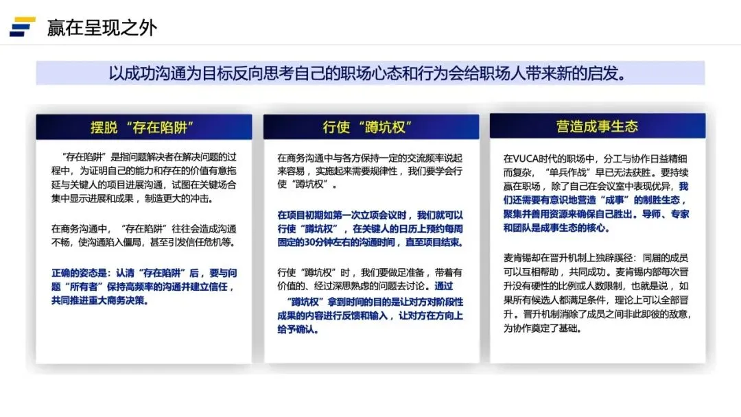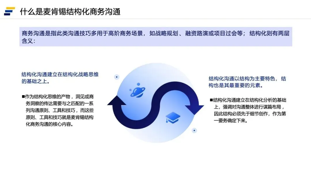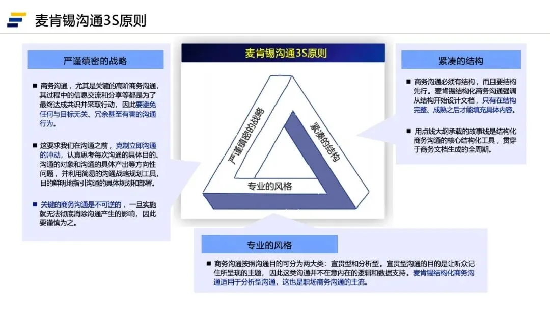 当前位置:首页>PPT>100页PPT《掌握麦肯锡结构化沟通技巧:深入解析金字塔原理、3S原则与5步关键抓取,结合6大构图组件》