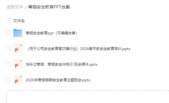 2026年中小学放寒假啦,这里给大家整理了一些安全教育学习的PPT资料,也有企业安全教育培训PPT合集给大家整理参考。资料来源于网络,仅供大家参考学习!下载方式1:(复制网盘链接到手机浏览器或者发送到聊天窗口中打开)