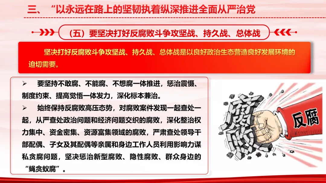 三、以永远在路上的坚韧执着纵深推进全面从严治党