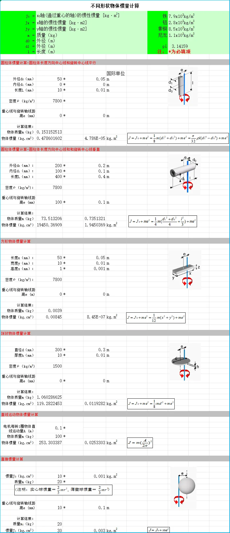 不同形状物体转动惯量计算Excel表【扫码下载】