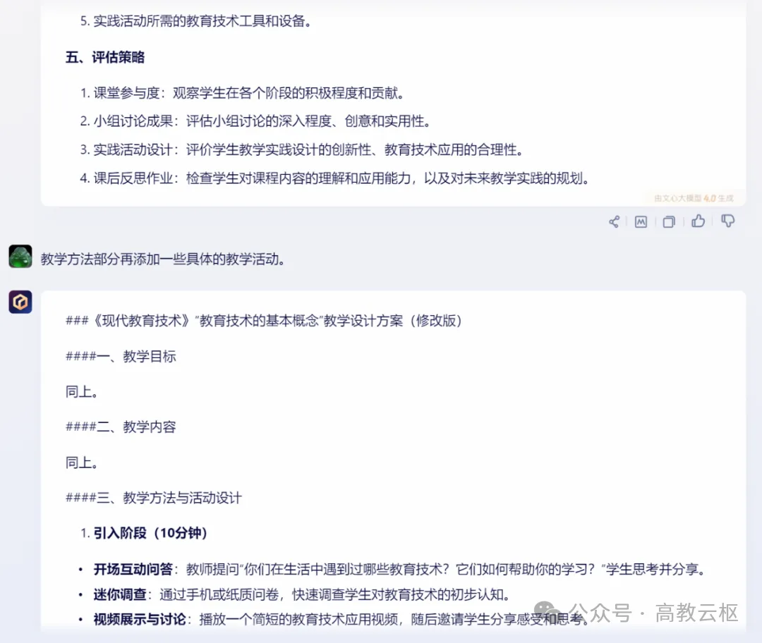 以“文心一言”为例,说明如何在教学中使用“生成”功能。