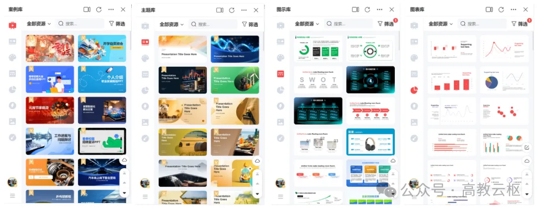 iSlide内置丰富的模板、素材、图标、图片等,一键解决PPT设计制做中的难题。
