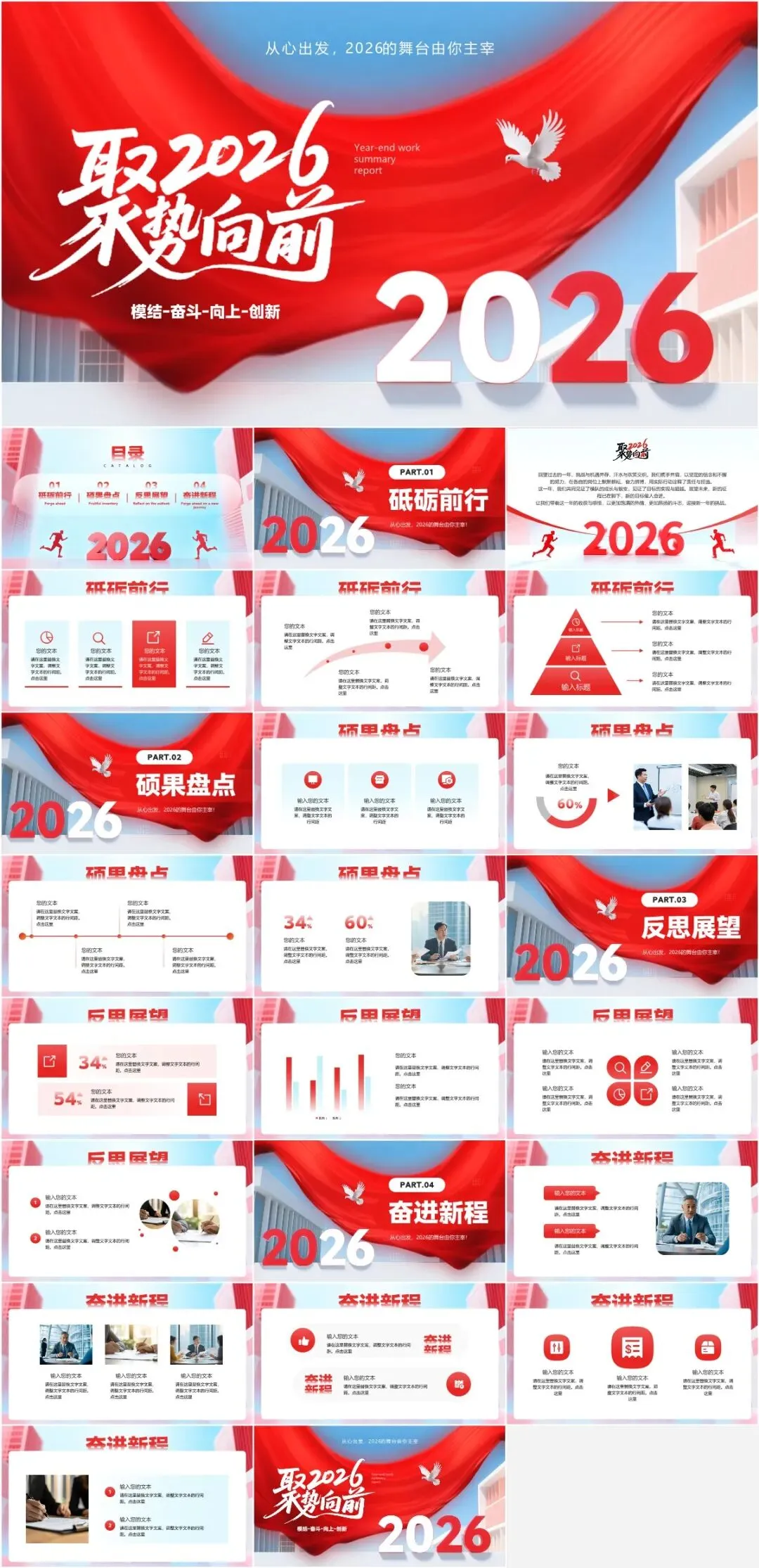我们为你整理了 「44套2026年工作总结PPT模板合集」,风格覆盖科技感、大气商务、简约清新等多种类型,每套均含完整页面架构,只需替换内容,即可快速完成一份出色的汇报演示。