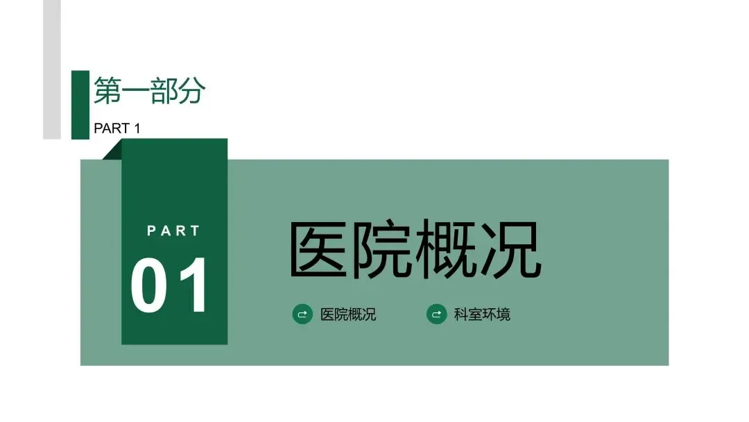 🏥第一部分(PART 1)为“医院概况”,该部分包含“医院概况”和“科室环境”两个内容板块。