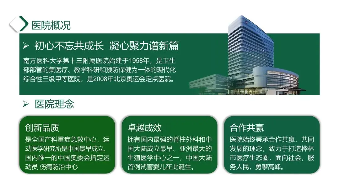 🏥南方医科大学第十三附属医院始建于1958年,是集医疗、教学科研和预防保健为一体的现代化综合性三级甲等医院,其理念涵盖创新品质、卓越成效、合作共赢三方面。