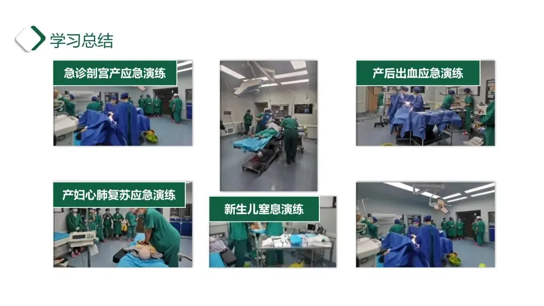 📚本次学习总结展示了急诊剖宫产、产后出血、产妇心肺复苏、新生儿窒息等多类应急演练的场景,以提升相关医疗应急处置能力。