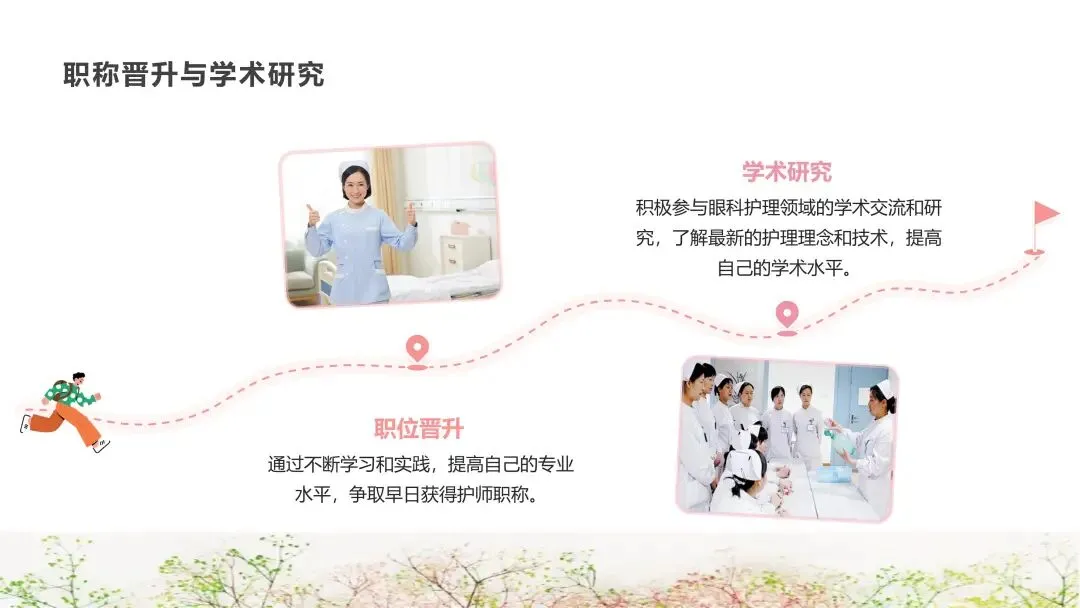 🏥职称晋升与学术研究方面,职位晋升需通过不断学习实践提高专业水平以获护师职称,学术研究要积极参与眼科护理领域学术交流研究以提升学术水平。