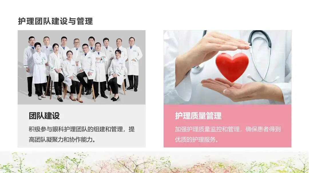 💊护理团队建设与管理包含两方面:一是参与眼科护理团队组建管理以提升凝聚力协作力,二是加强护理质量监控管理以保障患者获优质服务。
