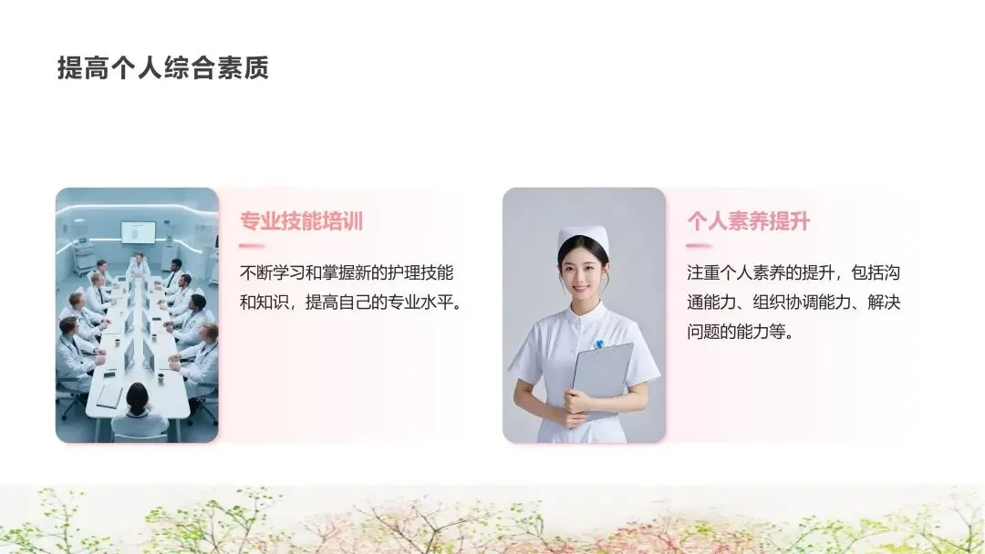 💡提高个人综合素质可通过专业技能培训(不断学习新护理技能知识以提升专业水平)和个人素养提升(注重沟通、组织协调、解决问题等能力提升)两方面实现。