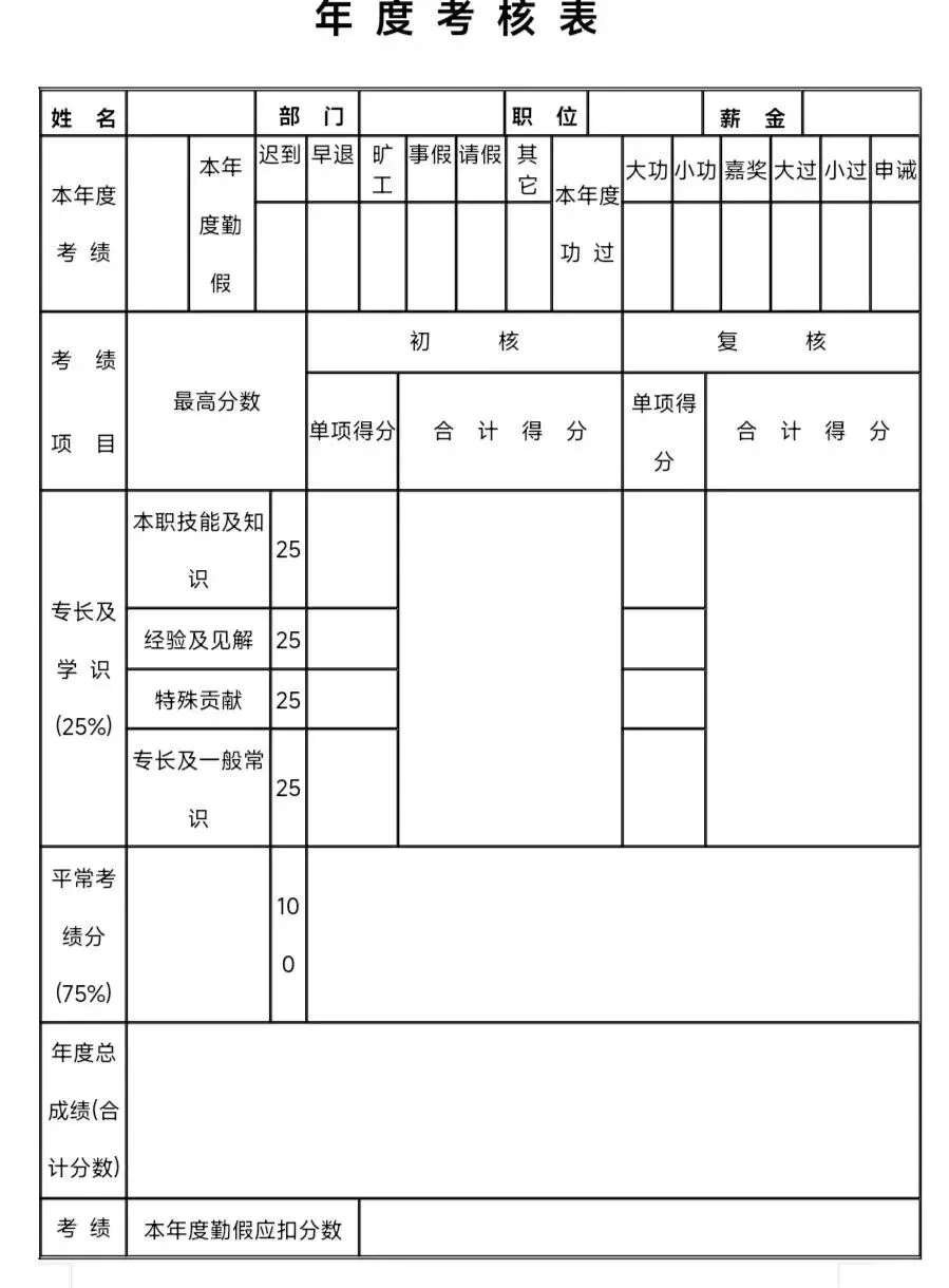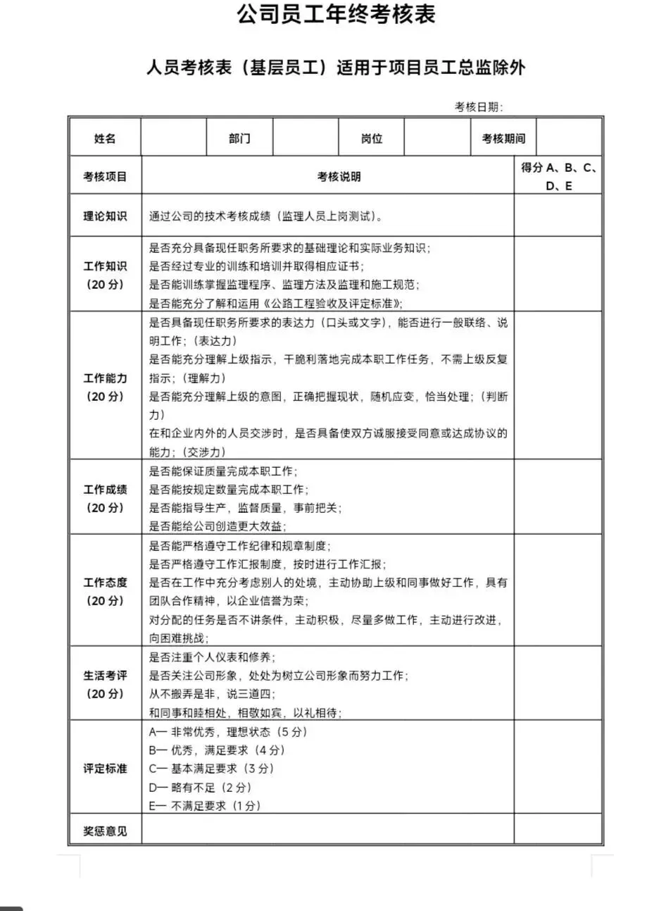 >可编辑|员工年终考核表word文档