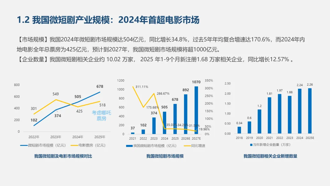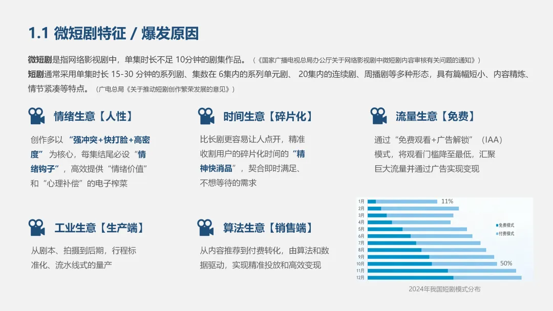 微短剧凭借“强冲突、快节奏、高密度”的强情绪输出、碎片化时间收割和免费模式得以高速发展,其2024年市场规模突破500亿,首超我国电影票房规模,展现出“情绪生意”背后的巨大产业潜力。