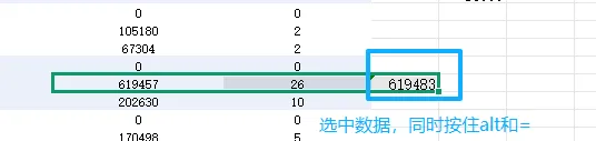 实操步骤:选中需要放求和结果的空白单元格(通常在数据列最后一行)→按下「Alt+=」,