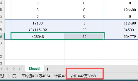 再分享一个小技巧:可以选中数据在左下端也可以求和哦,方便检查~