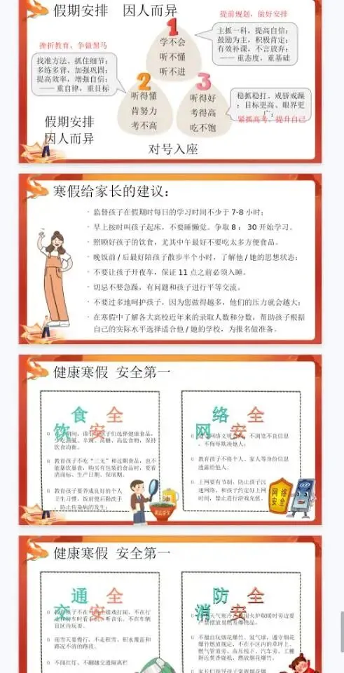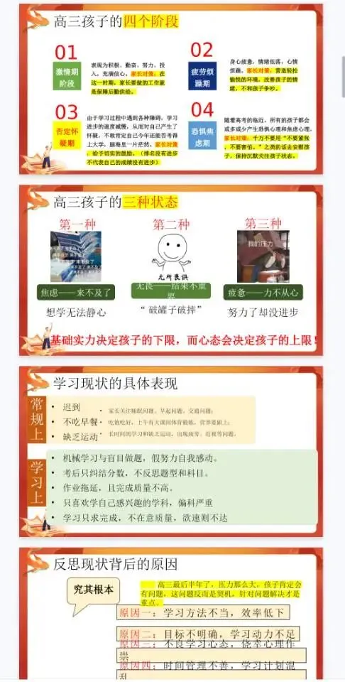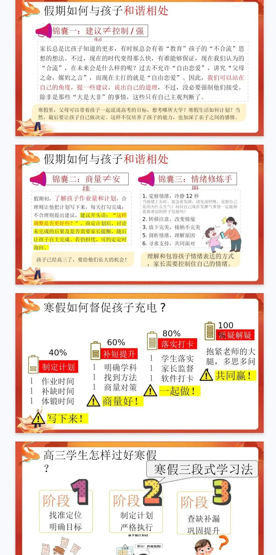 此次家长会主要内容分为4大点:01学情总结:现状要清晰:02考情分析:归因要精准;03智慧陪伴:教育有方法:04科学规划:寒假有计划。