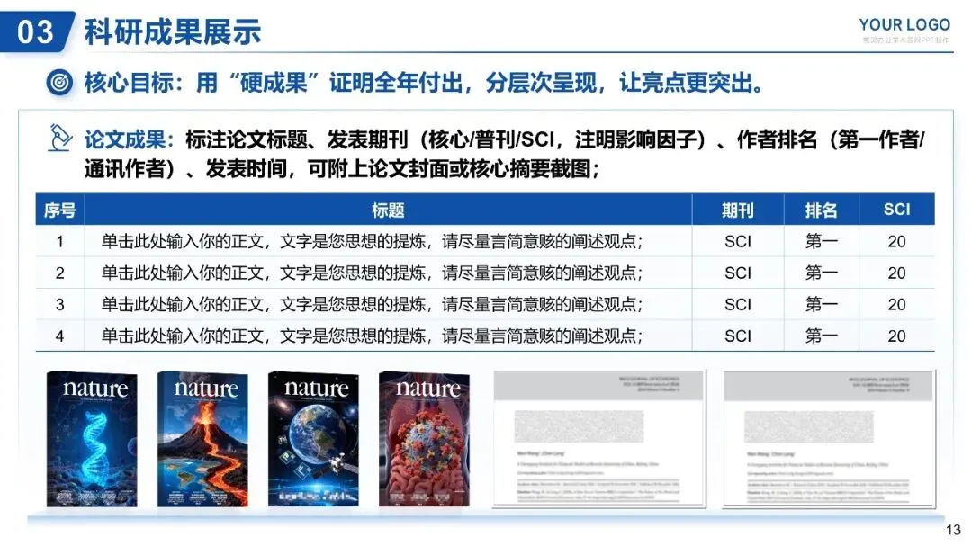 (四)科研成果展示(3-4页,亮点突出,体现价值)
