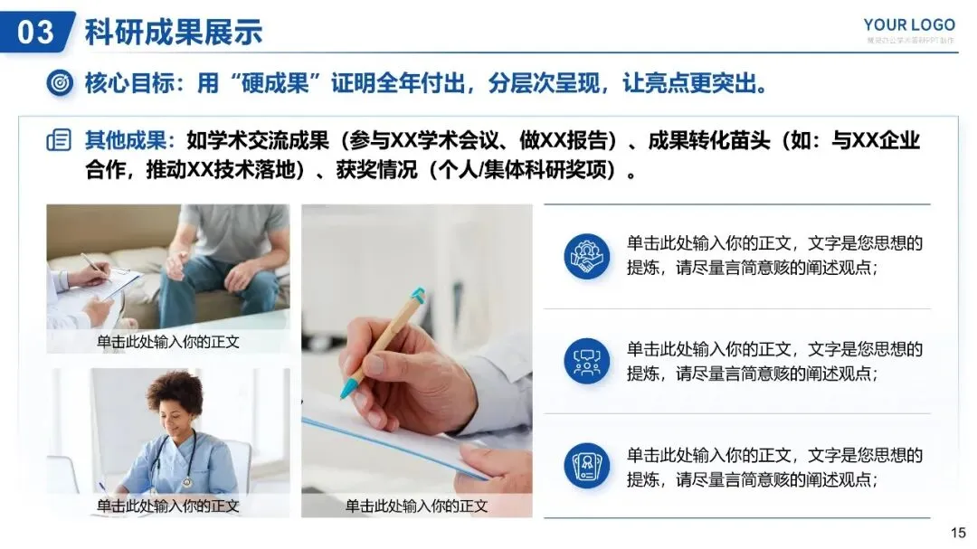 核心目标:用“硬成果”证明全年付出,分层次呈现,让亮点更突出。