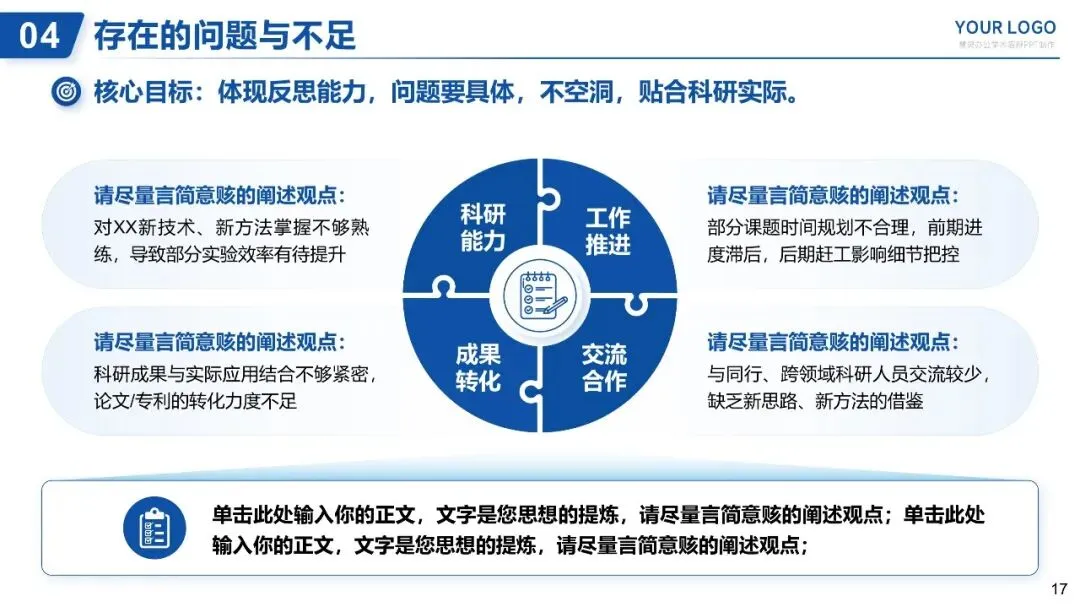 (五)存在的问题与不足(1页,客观务实,不回避短板)