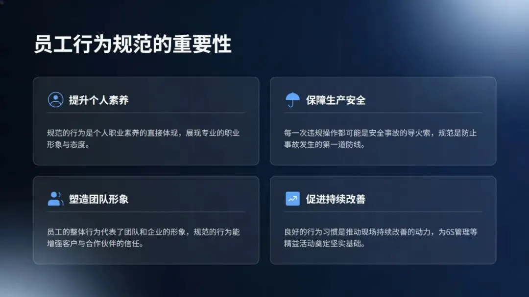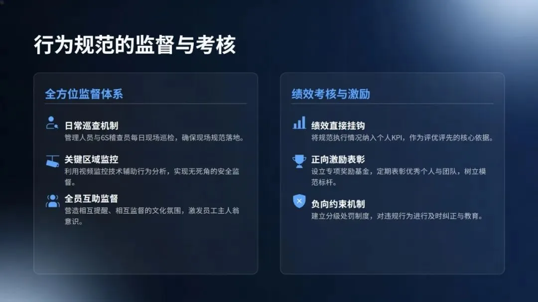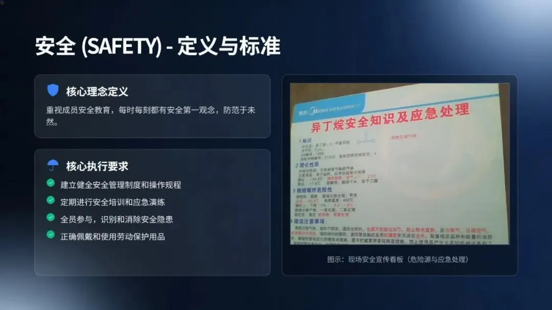 内容核心涵盖三方面:一是技术融合,详细介绍了 AI 视觉识别、数字孪生、AR 等智能技术在 6S 中的创新应用,并以丰田、西门子、宁德时代等企业为例,量化展示了生产效率、质量和安全水平的显著提升;二是行为管理,引入行为安全观察、神经科学等理论,阐述了如何通过数据洞察和正向激励,将员工从被动执行转变为主动参与的自主管理模式;三是实施路径,提出了诊断、数字化基础、智能整合和文化深化的四阶段路线图,并强调了领导层承诺、数据文化等关键成功因素。
