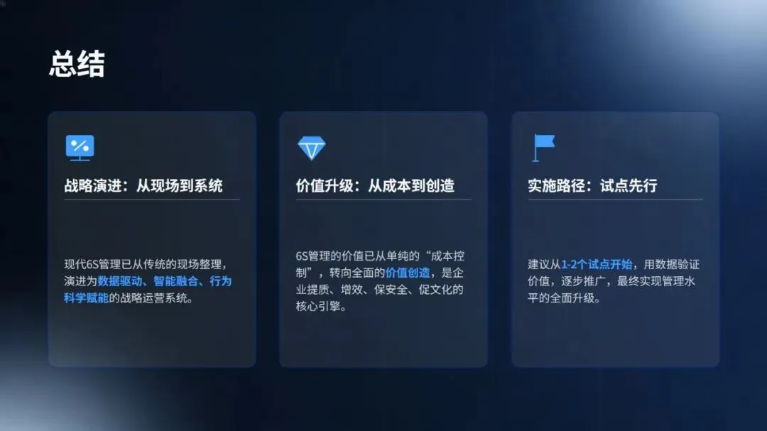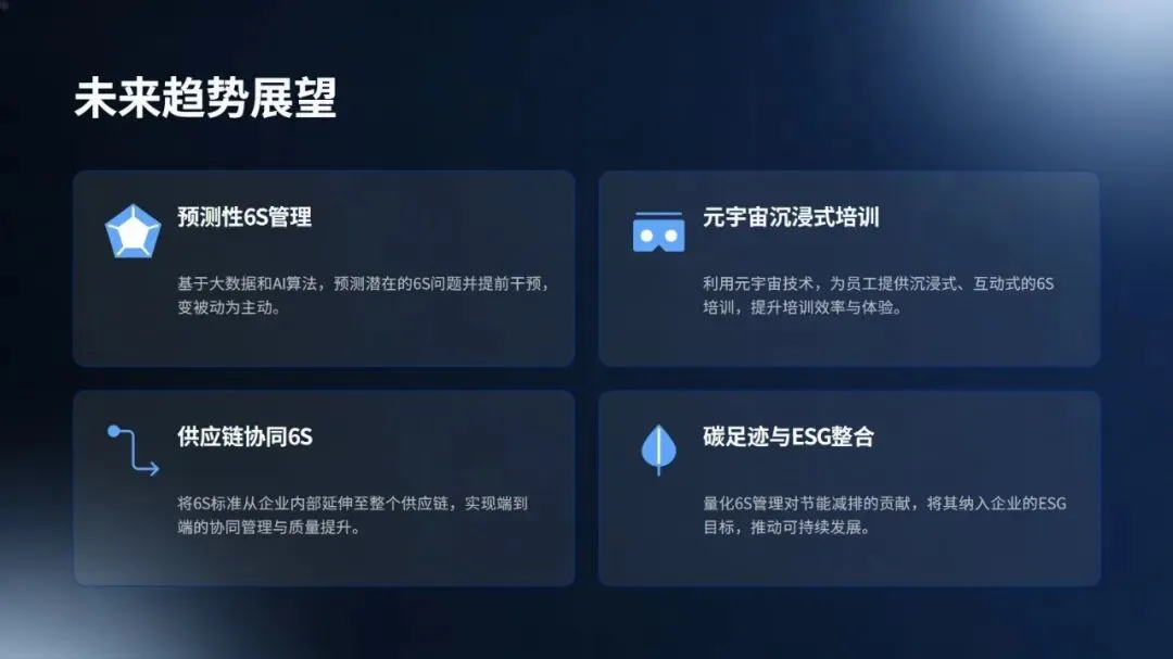 最后展望了预测性 6S、元宇宙培训等未来趋势,明确指出,现代 6S 已成为企业提质增效、实现可持续发展的核心驱动力。