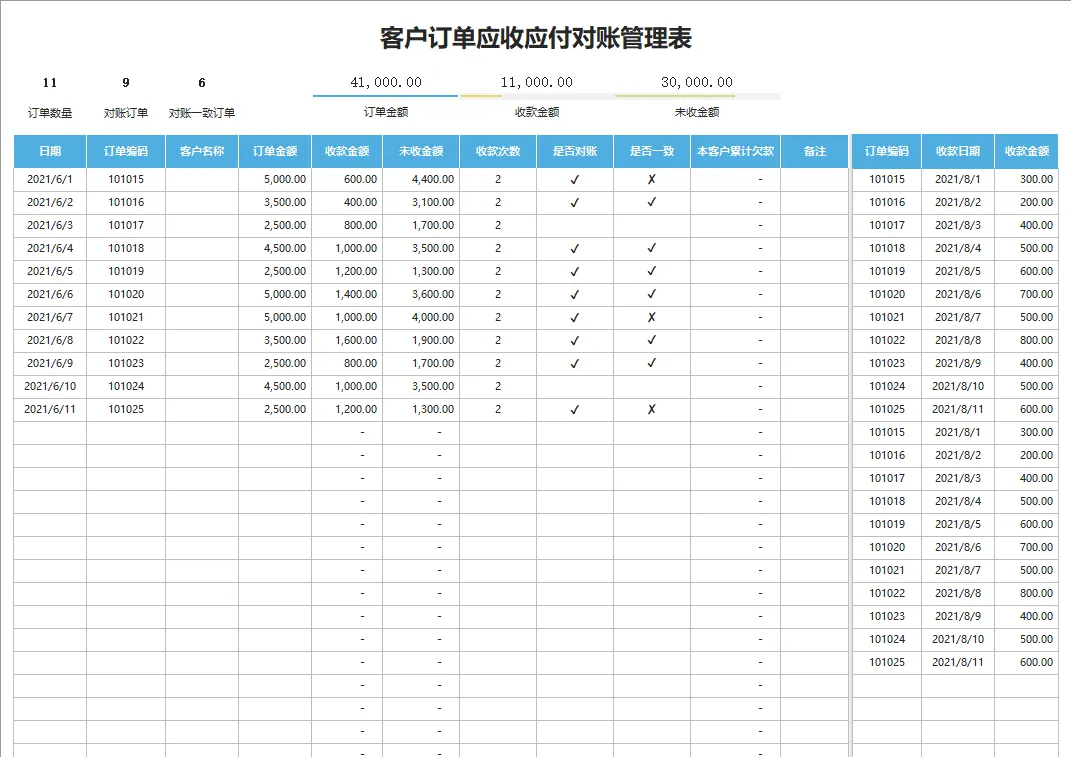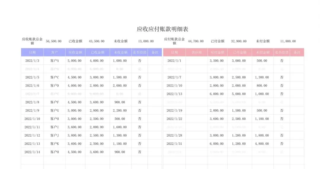 应收应付表格和系统