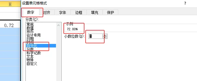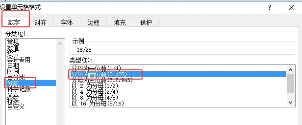 例:在比例表中,“0.72”设置为“分母为两位数(21/25)”