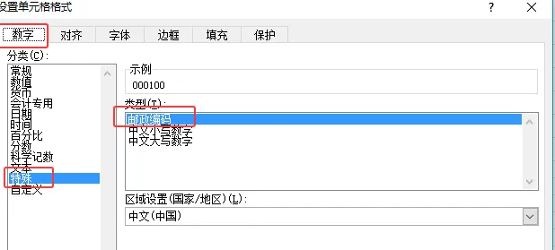 例:输入“00100”,设置为邮政编码格式,显示为“00100”。