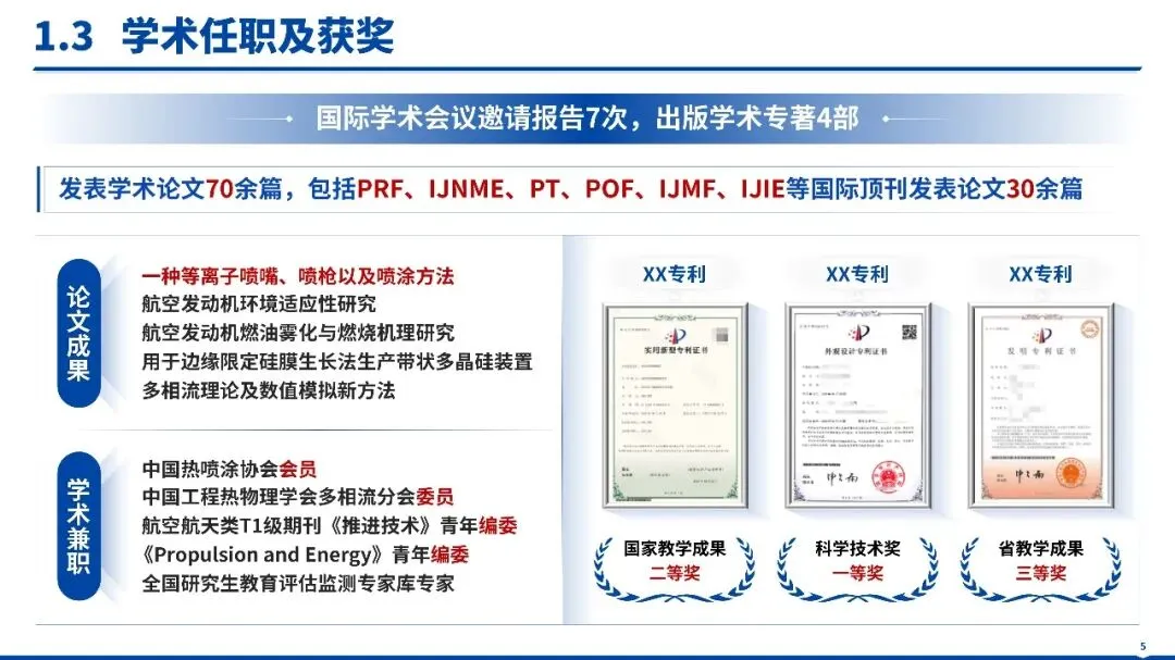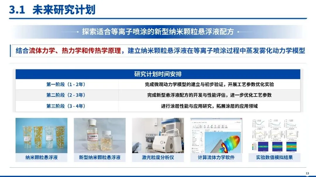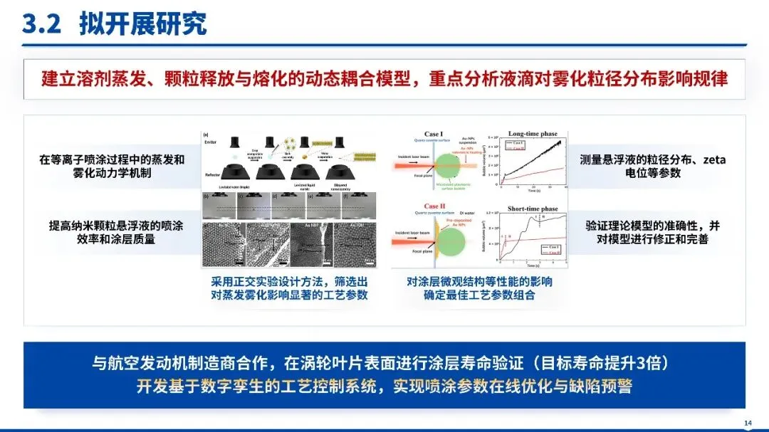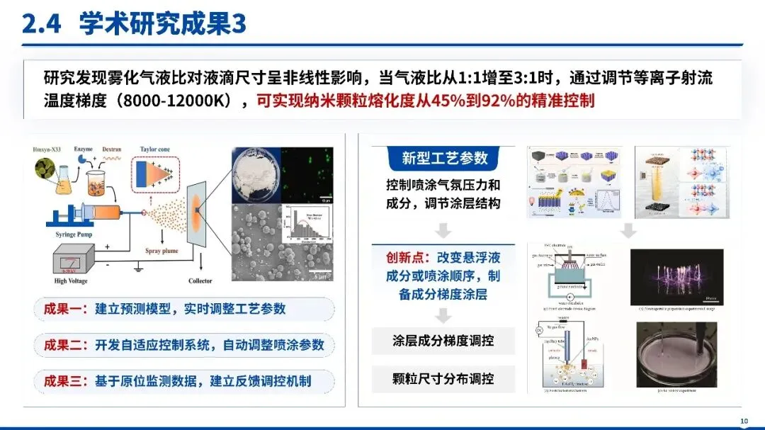 具象化三大核心贡献(如等离子射流 - 粉末颗粒耦合动力学理论创新、高精度雾化过程调控技术突破、典型涂层制备与性能优化技术研发),用表格清晰呈现核心成果;从理论阐释、核心技术、应用场景(航空航天、高端装备、生物医学等)三维凸显差异化优势;研究方法依托流体力学、材料科学与工程热物理成熟理论,经 “理论建模 - 数值模拟 - 实验验证 - 工艺优化” 多层级验证,强化成果严谨性。