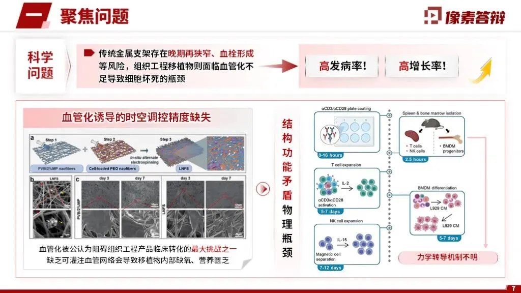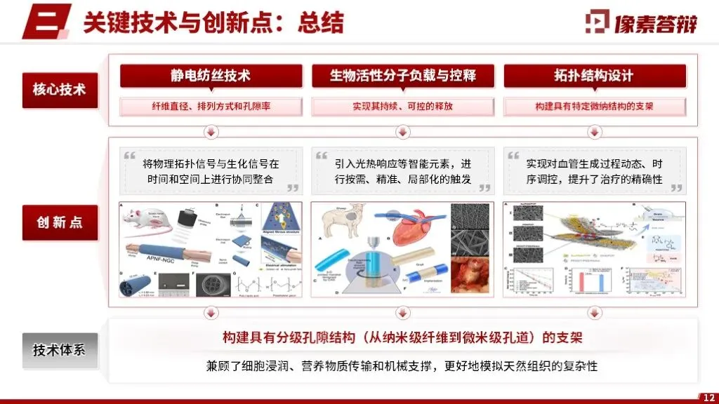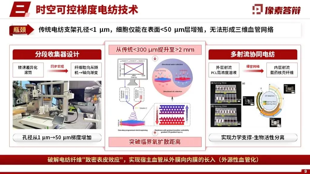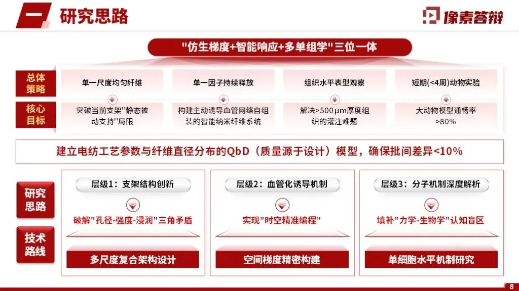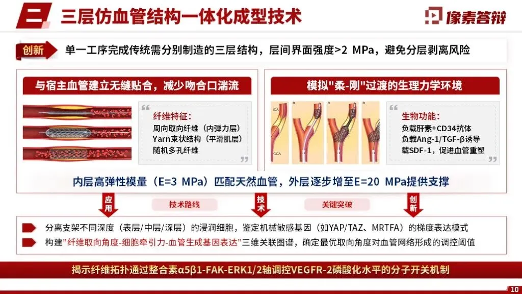 通过血管化厚度(>2mm)、层间强度(>2MPa)、动物模型通畅率(>80%)等硬性参数,结合单细胞测序、实时成像等尖端技术,将生物学机制转化为可验证的工程解决方案。