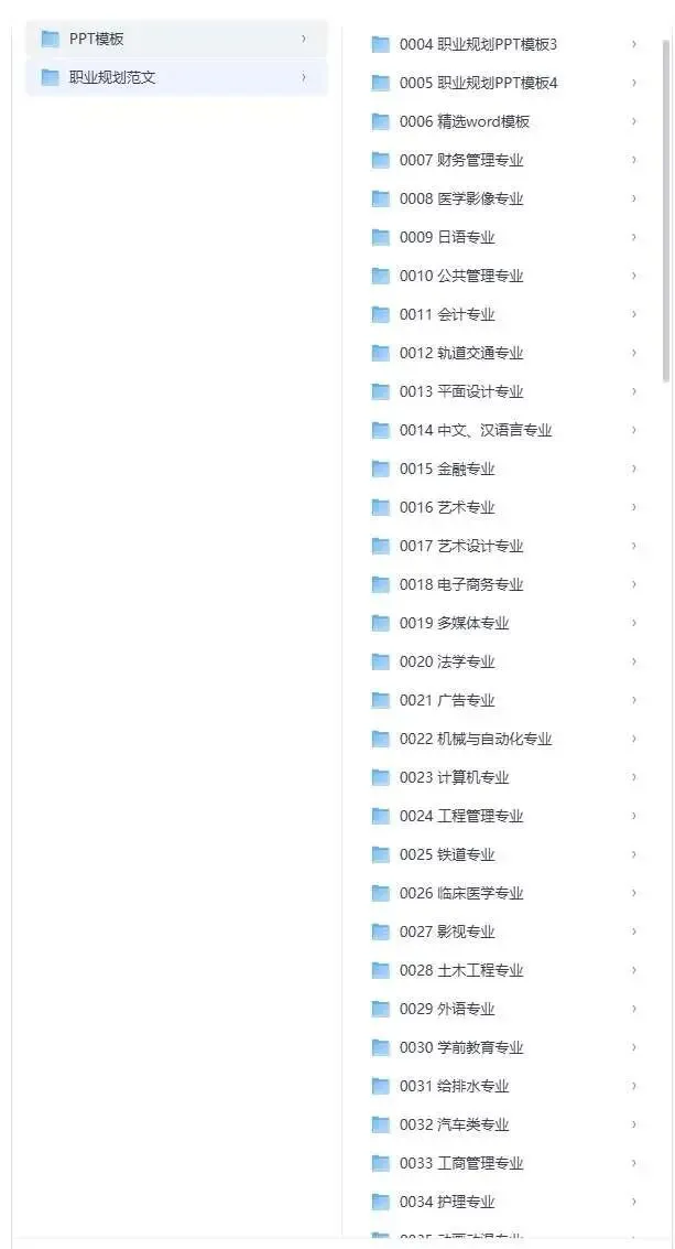 - 职业规划与求职类:大学生职业生涯规划PPT、职业规划PPT模板(覆盖财务、医学、计算机等30+专业)、高级个人简历PPT模板,适合求职面试、职业发展规划使用。