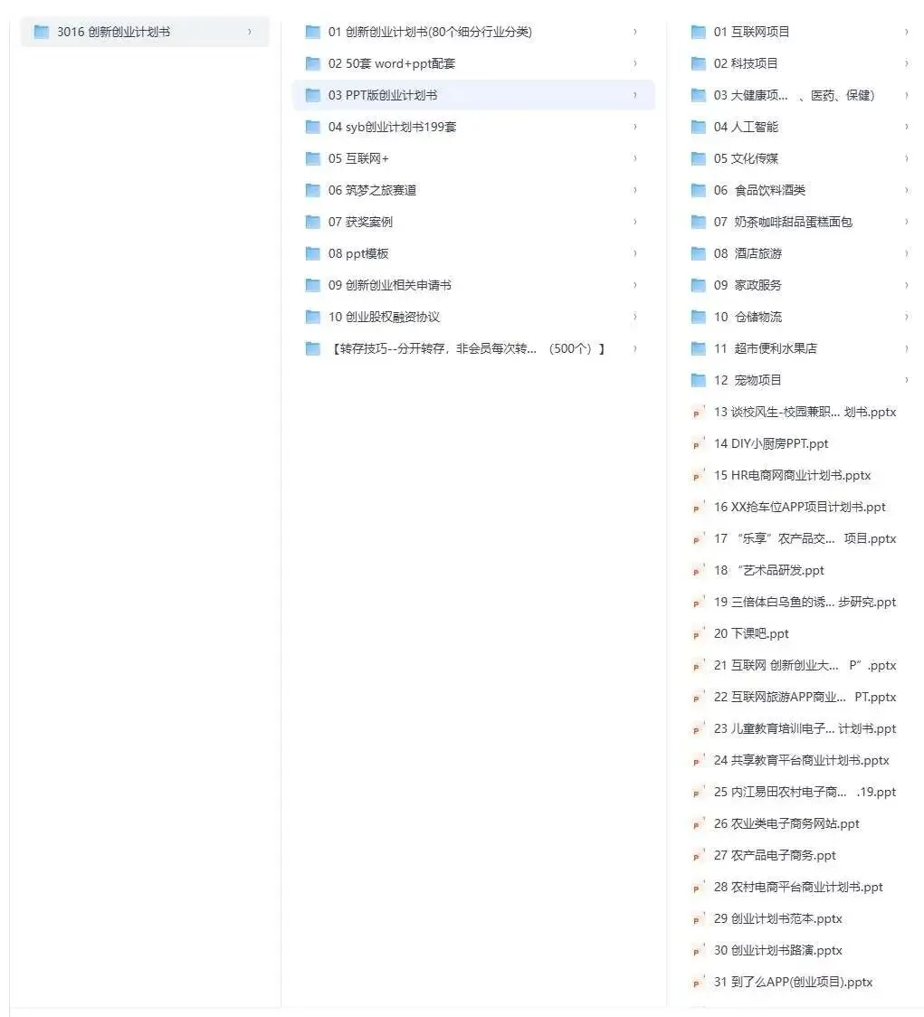 - 创业与商业类:75套商业计划书PPT模板、创新创业计划书(含80个细分行业分类、PPT版创业计划书、syb创业计划书199套),还有互联网、科技、大健康、文化传媒等垂直领域的创业项目PPT,为创业者提供专业的方案展示工具。