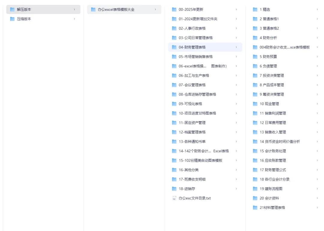 - 专项财务管理:固定资产管理模板(包含固定递减折旧计算、双倍递减折旧计算等表格)、应收账款管理.xlsx、货币资金时间价值分析.xlsx