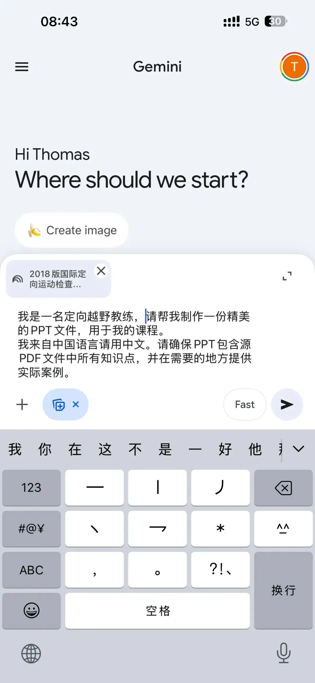 将 IOF 的 PDF 知识点复制或总结成核心文本。在 Gemini 聊天框中输入你的“身份指令”。
