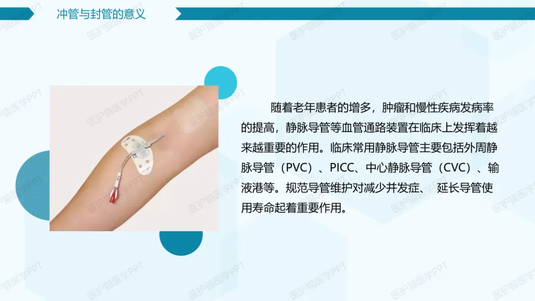 随着老年患者的增多,肿瘤和慢性疾病发病率的提高,静脉导管等血管通路装置在临床上发挥着越来越重要的作用。临床常用静脉导管主要包括外周静脉导管(PVC)、PICC、中心静脉导管(CVC)、输液港等。规范导管维护对减少并发症、 延长导管使用寿命起着重要作用。