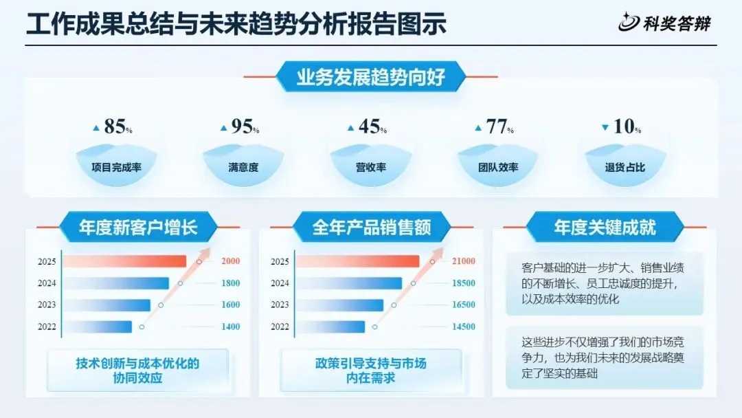 ✅ 适配场景:对内汇报偏务实,图表简洁为主;对外展示可适当增加设计感,但不浮夸