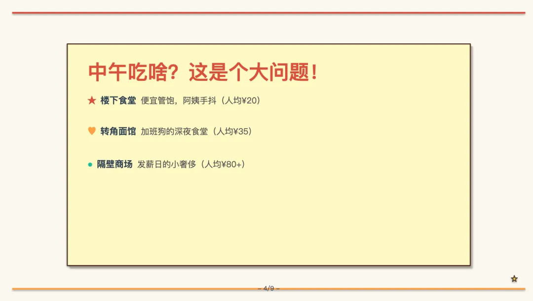还是没前面的案例效果好啊!对,这正是我放出来这几张丑的PPT的原因。网上告诉你:有手就行,一把就能做出生产级PPT。