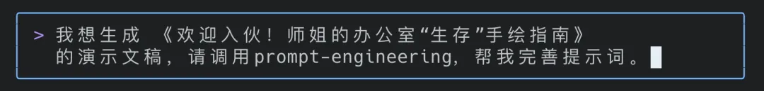 1. 制作任何主题的文稿/演示文稿/PPT/幻灯片2. 改进/优化演示/提案/演示3. 将散落的材料转化为结构化、有说服力的幻灯片演示4. 制作包含数据可视化和演讲说明的演示文稿5. 为商业评论、产品推介、教育内容或报告构建演示文稿跳出技能包本身,不管我们是否用AI来辅助生成做 PPT,在正式开始前,也应该先思考并回答下列问题。