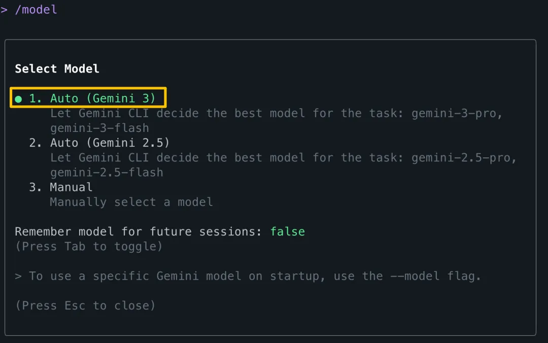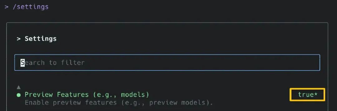 npm install -g @google/gemini-cli@preview输入 /setting,将右侧的 false 改为true