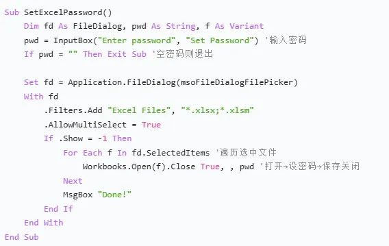 方法4:使用VBA宏脚本批量给Excel设置打开密码