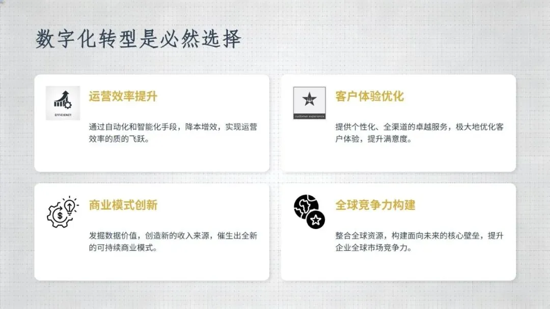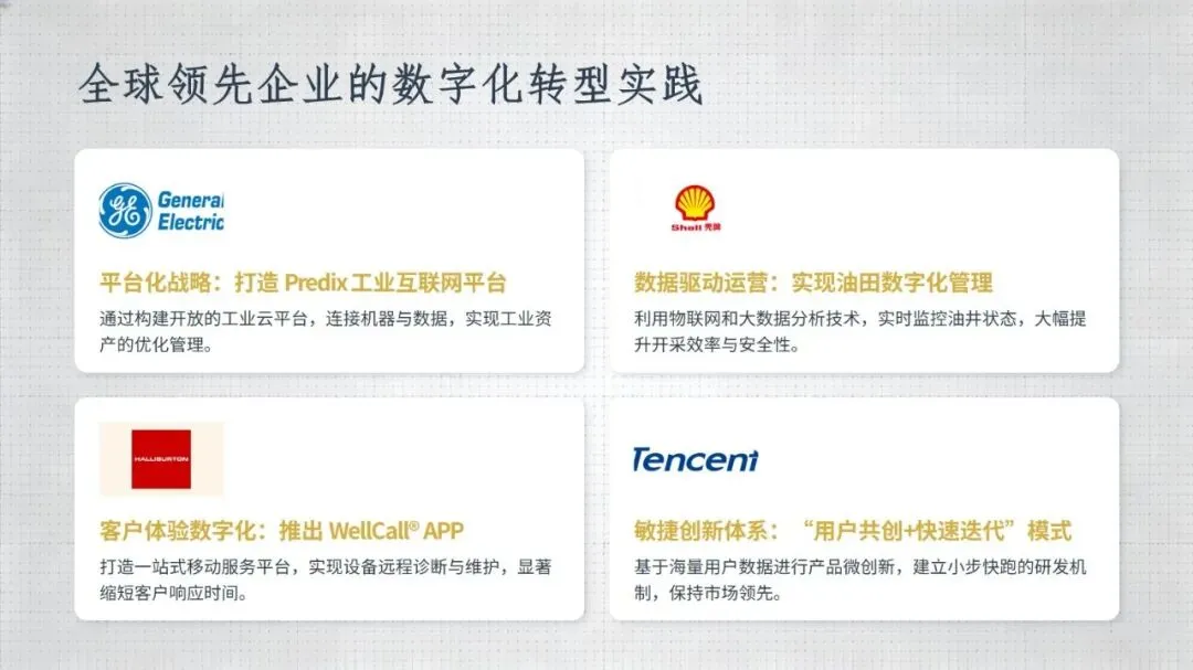 这次转型不只是技术层面的升级,更是战略、组织、流程的全方位系统性变革。以数据为核心驱动、以客户为中心导向,通过科学顶层设计与敏捷落地执行相结合,助力企业突破发展瓶颈,打造数字化核心竞争力,稳步迈向全球领先的综合一体化油田服务公司。