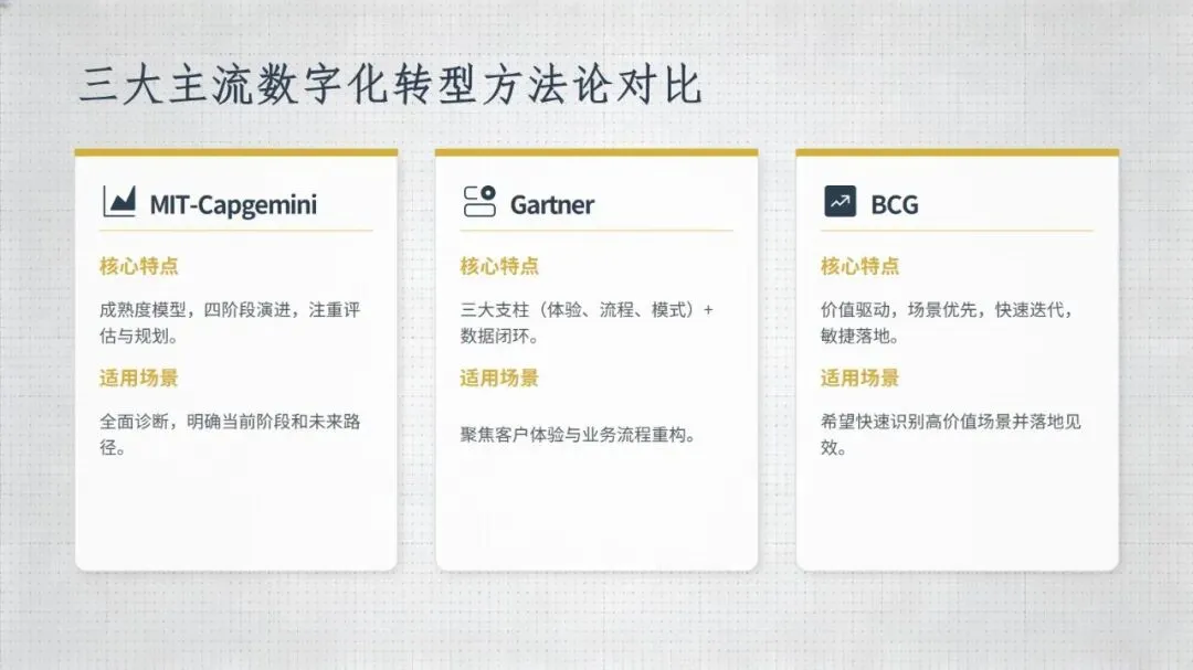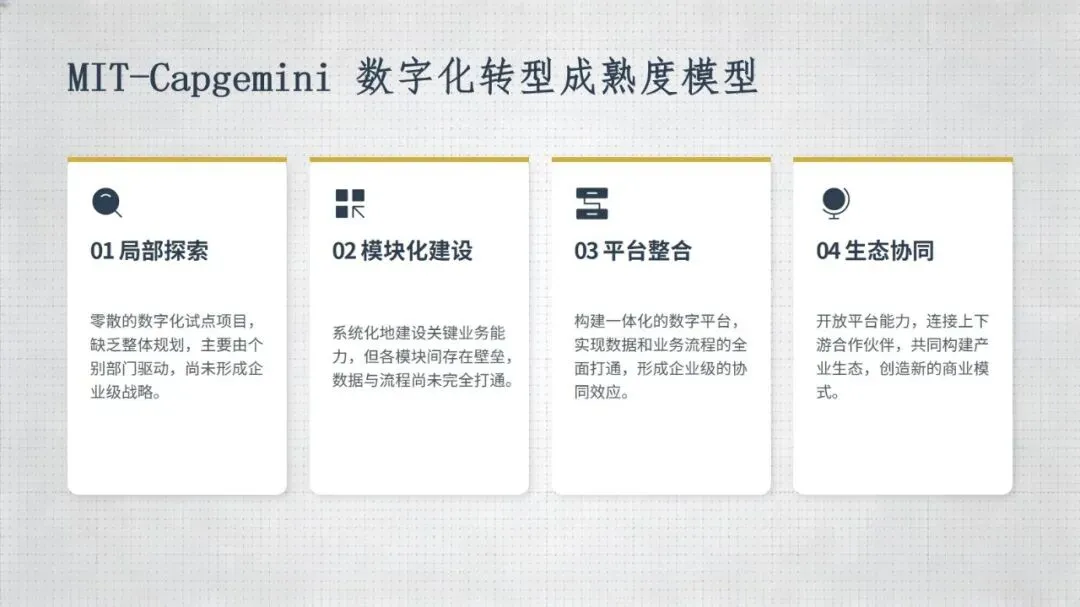 整个规划围绕客户体验优化、智能运营升级和商业模式创新三大核心,借鉴 MIT-Capgemini 成熟度模型、Gartner 框架等行业先进方法,明确了 “夯实基础 — 数据驱动 — 生态创新” 的三阶段推进路径。参考哈里伯顿、贝克休斯等行业龙头的实践经验,我们梳理出智慧客户、智能运营、创新业务等核心数字化场景,还搭建了涵盖业务、应用、数据、技术的企业架构方案。