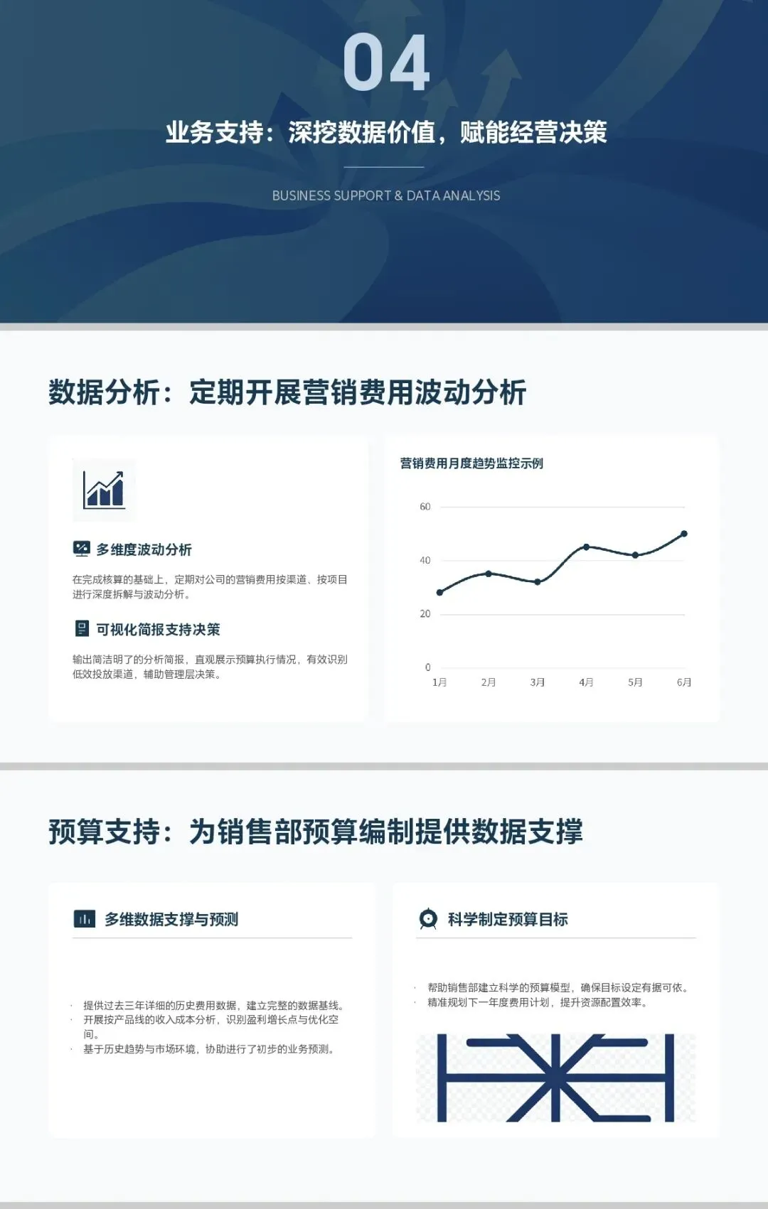 在2026年预算编制工作中,我为销售部、生产部、采购部等6个业务部门,提供了近3年的历史费用、成本数据明细及趋势分析,协助各部门精准测算预算额度。例如,针对生产部提出的产能扩张计划,我通过分析单位产品能耗、人工成本变化趋势,为其提供了更合理的成本预算参考,帮助部门优化了预算方案,避免了盲目扩张带来的成本压力。