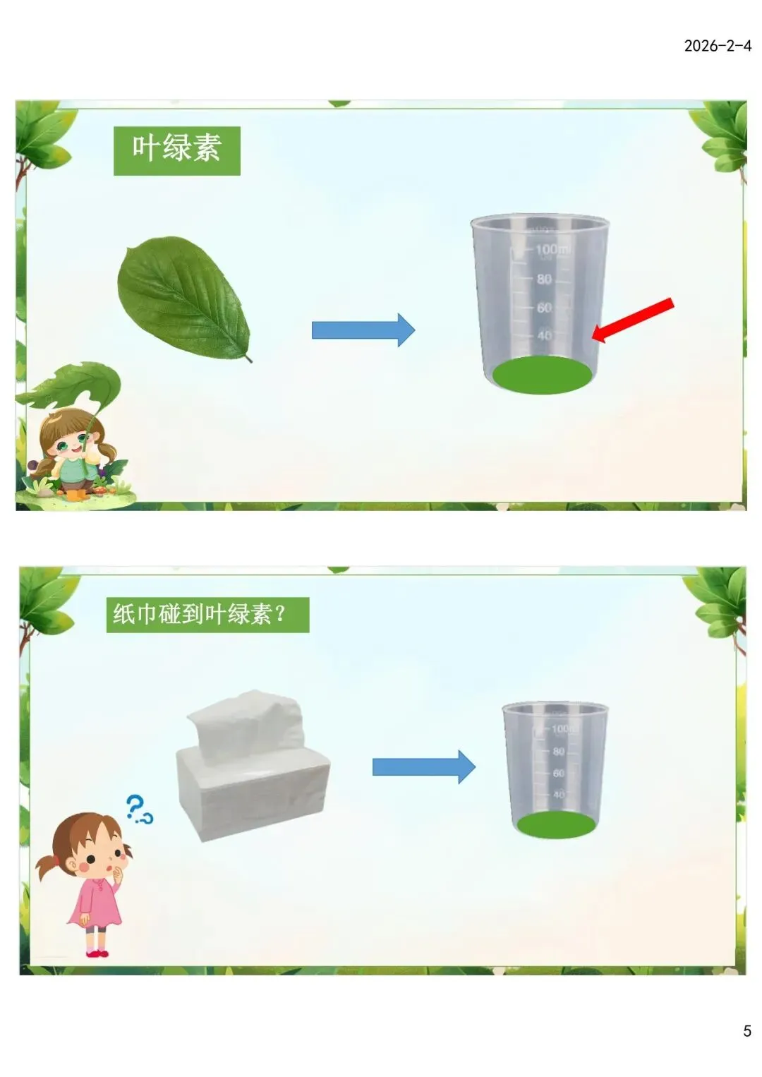 1.部分幼儿对“叶绿素”的抽象概念仍模糊,仅停留在“绿色被泡出来”的直观感受。