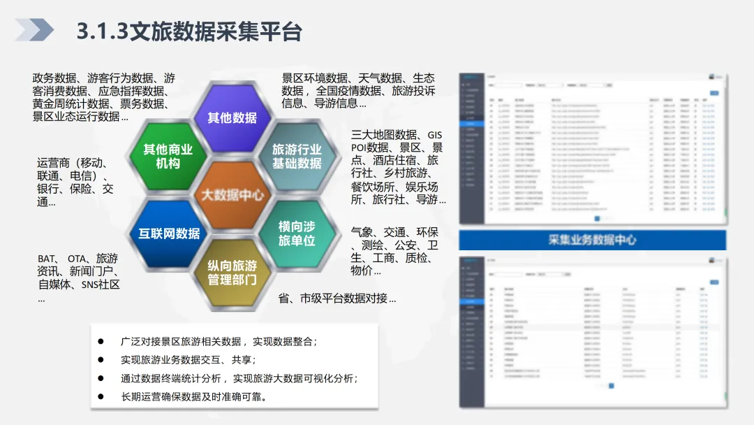 方案深度整合多源数据,涵盖政务、运营商、互联网及涉旅企业数据,构建大数据分析体系,实现游客画像、客源分析、舆情监测等功能,为精准决策提供支撑。同时,面向游客打造“一部手机游县区”服务体系,覆盖“吃住行游购娱”全流程,提供智能导览、在线预订、一键投诉、应急救援等服务;面向管理端实现文旅资源可视化监管、网格化执法、应急指挥联动,提升行业管理效率。
