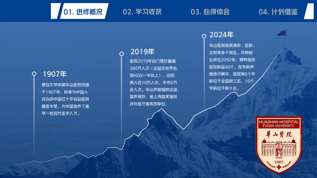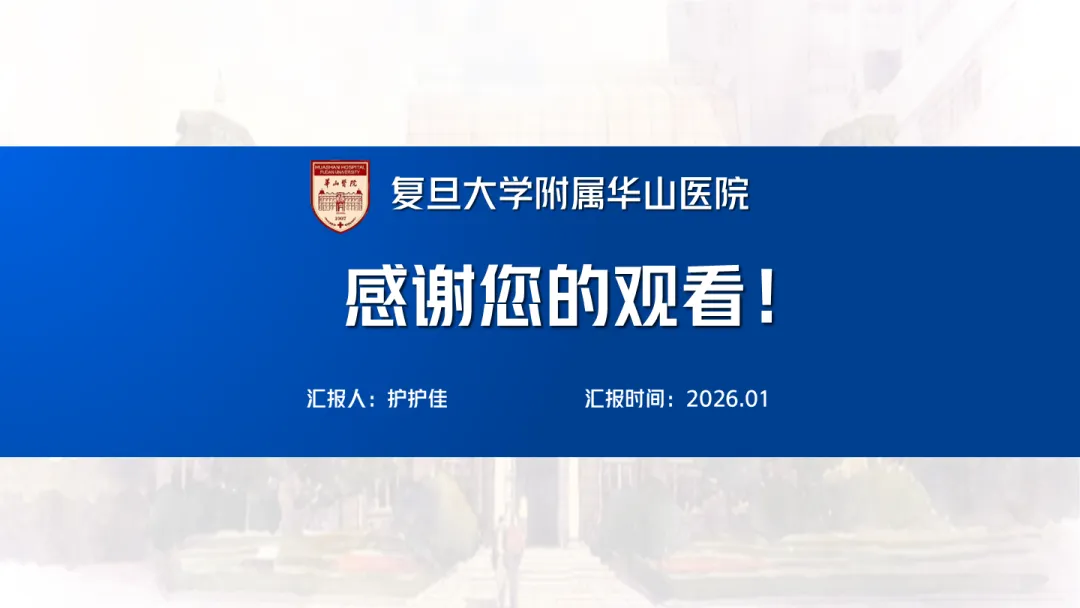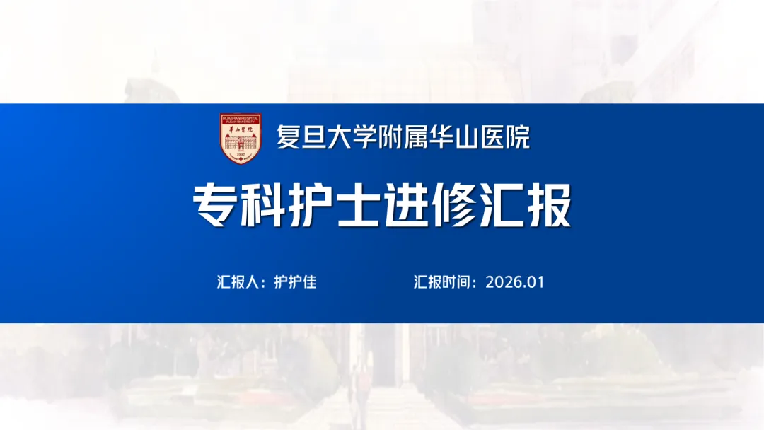 大家好。我是护护佳。非常荣幸能在此分享我在复旦大学附属华山医院为期三个月的专科进修学习情况。这次进修不仅是一次知识的积累,更是一次视野的开阔与护理理念的升华,让我深刻体会到持续学习对于护理专业发展的重要意义。