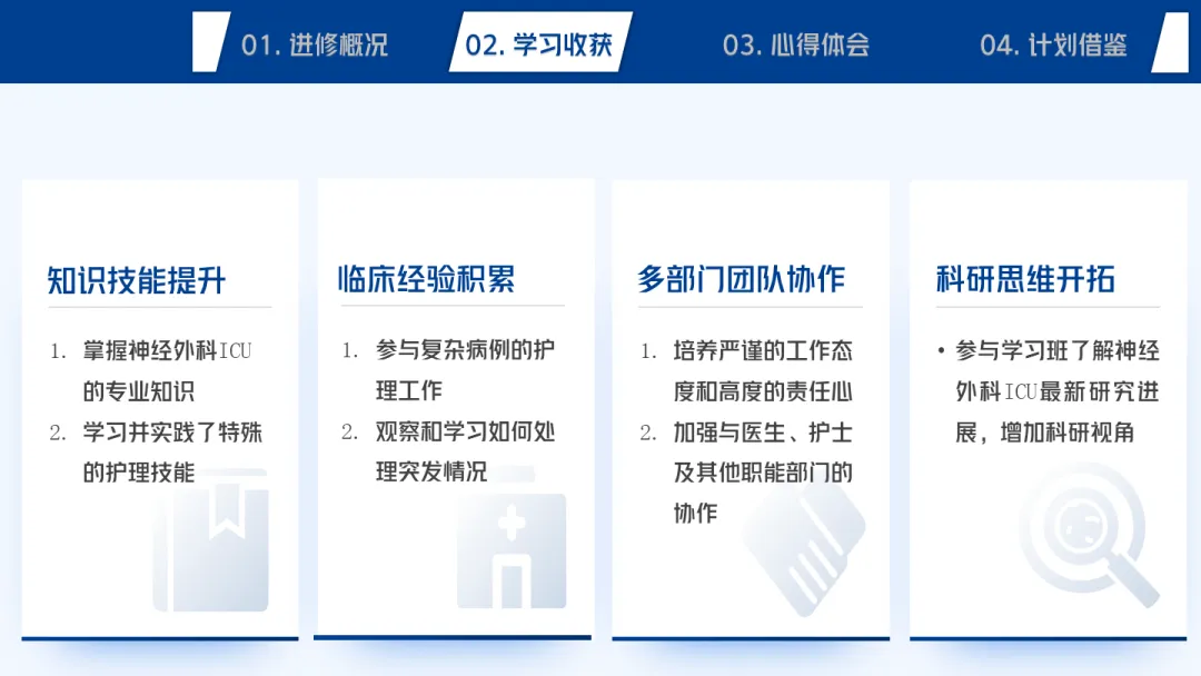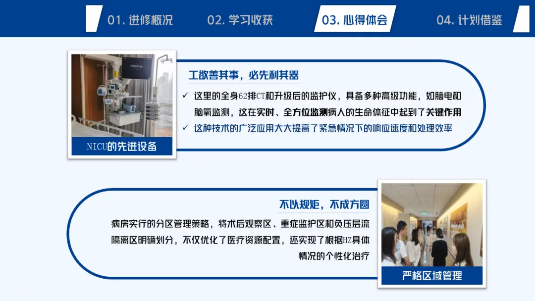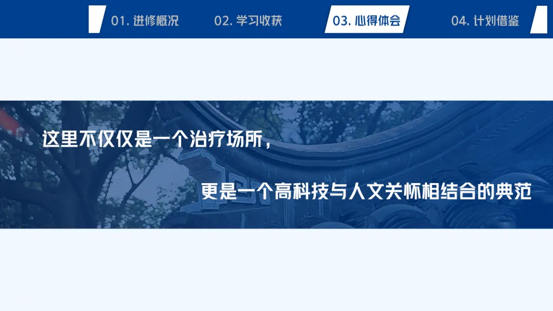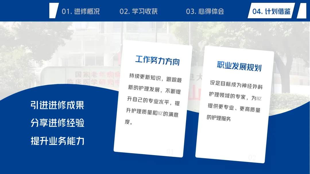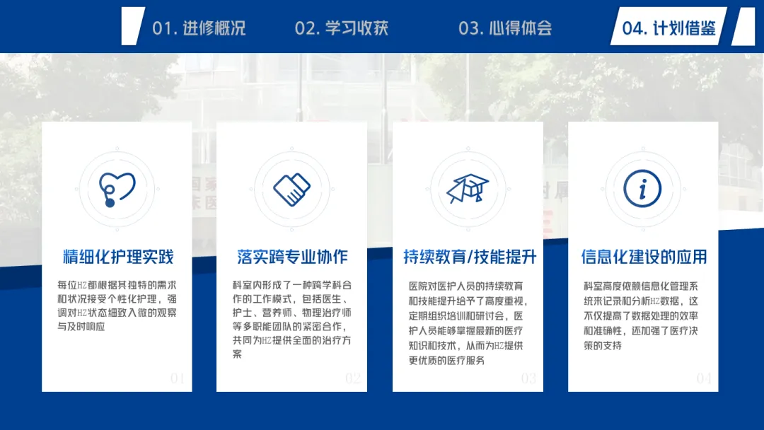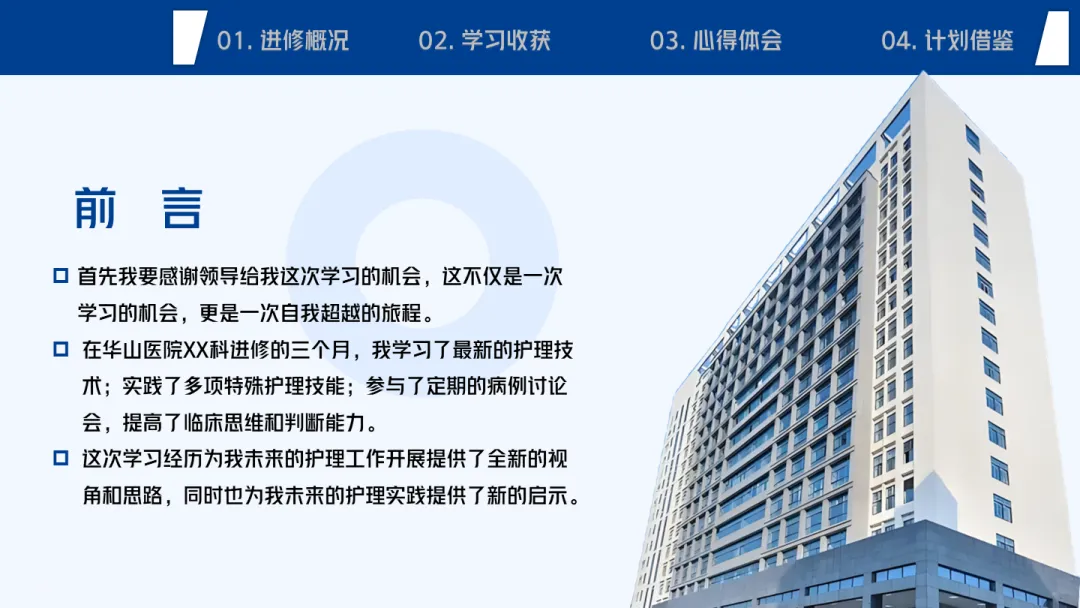 最后,再次感谢领导的信任与支持,感谢华山医院老师们的悉心指导。我将以此次进修为新起点,不断精进专业,为患者提供更优质、更温暖的护理服务。