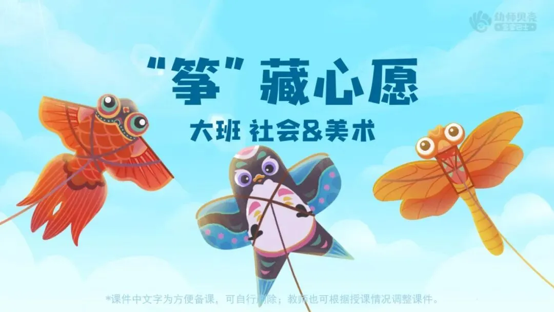 课件准备:“风筝博物馆”组图;“风筝的故事”故事音频及组图;“传统风筝”组图。