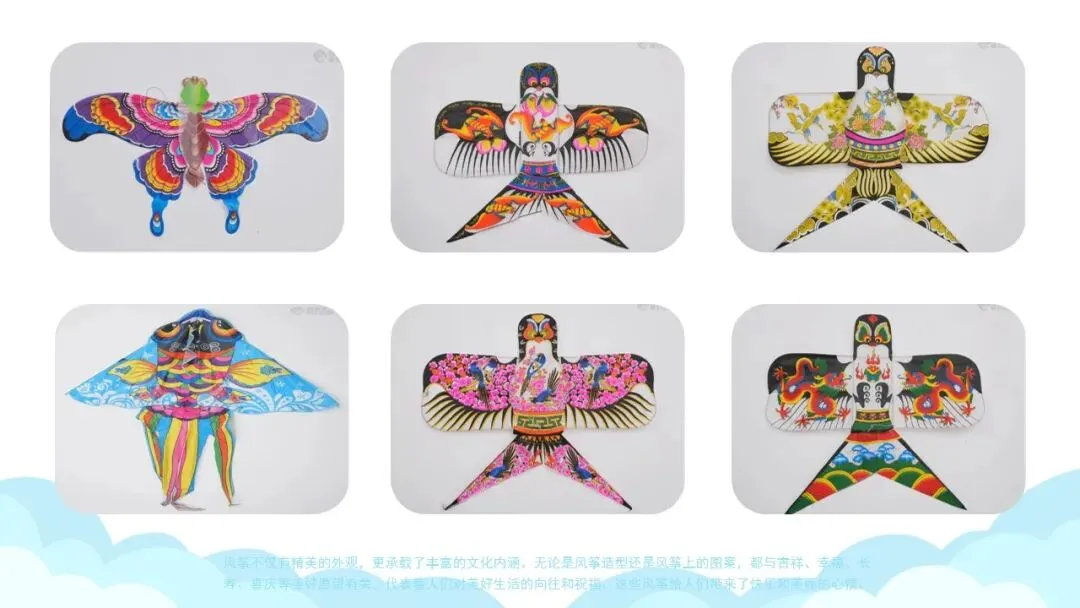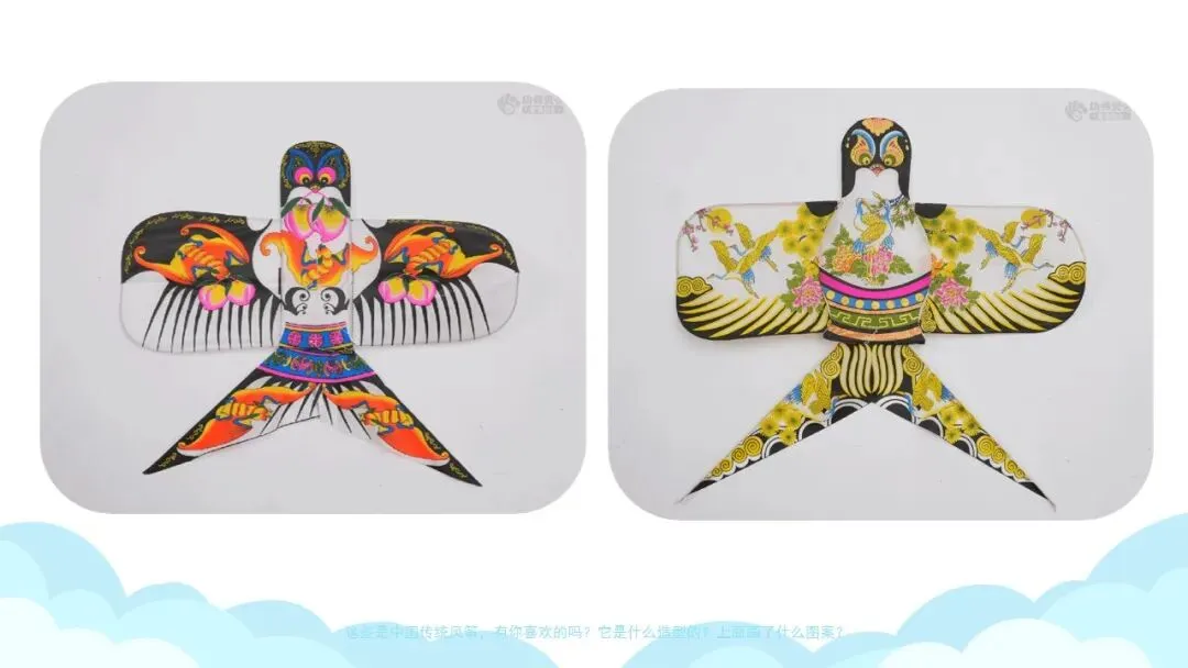 欣赏中国传统风筝,了解风筝图案的美好寓意。