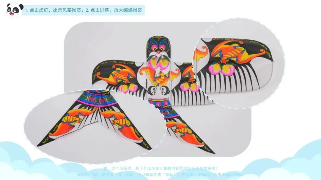 ——看,这个风筝里,画了什么图案?(蝙蝠)