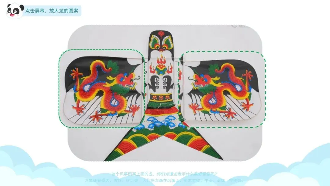 ——这个风筝图案上画的龙,你们知道龙表示什么美好寓意吗?