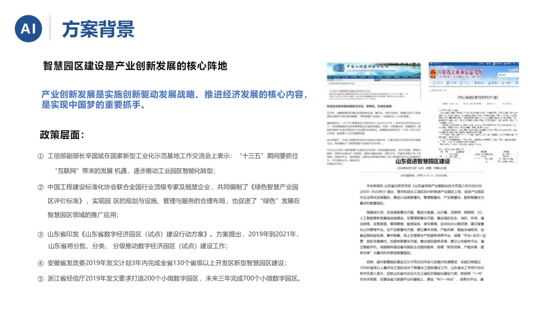 方案具备高效智能、降本增效的显著优势,通过赋能园区智慧大脑,助力园区实现安全有序、设施智能、管理高效、环境宜居的建设目标,为产业创新发展提供有力支撑。
